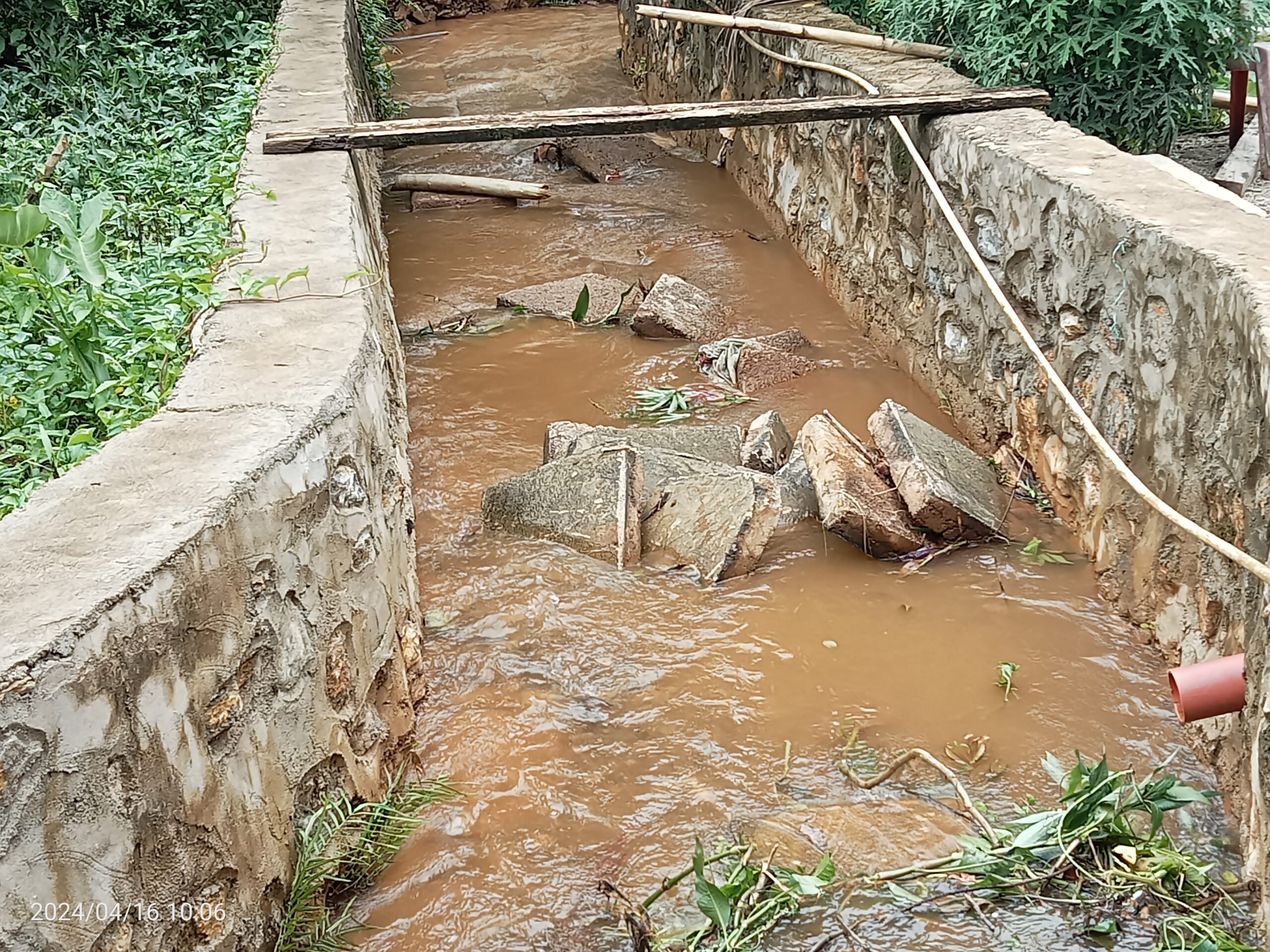 MORUT- Baru selesai dikerjakan, proyek saluran drainase di Bahontula terbongkar, Senin malam 15 April 2024.