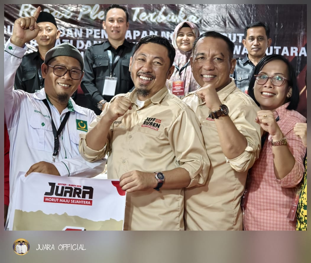 MORUT- Pasangan calon (Paslon) Bupati dan Wakil Bupati Morowali Utara (Morut), Jeffisa Putra Amrullah dan Ruben Hehi mengantongi nomor urut 1 dalam kontestasi politik di Bumi Tepe Asa Aroa.