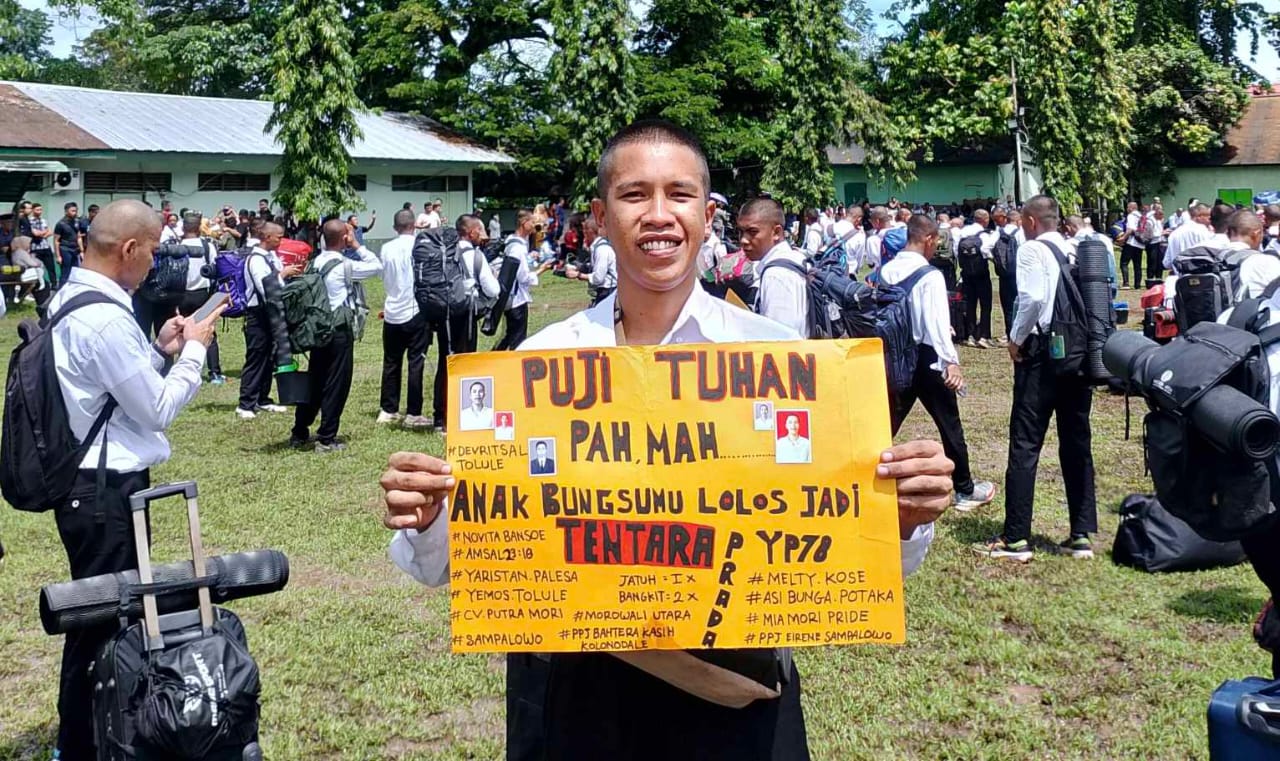 Kolonodale, 26 Februari 2025 – Perjalanan hidup Ade Trisno Tolule menjadi bukti bahwa mimpi besar dapat diraih dengan kerja keras, doa, dan dukungan dari orang-orang terdekat. Pemuda asal Desa Sampalowo, Kecamatan Petasia Barat, Kabupaten Morowali Utara (Morut), yang berasal dari keluarga petani, kini resmi menjadi anggota Tentara Nasional Indonesia Angkatan Darat (TNI AD) setelah lulus seleksi di Manado, Sulawesi Utara.