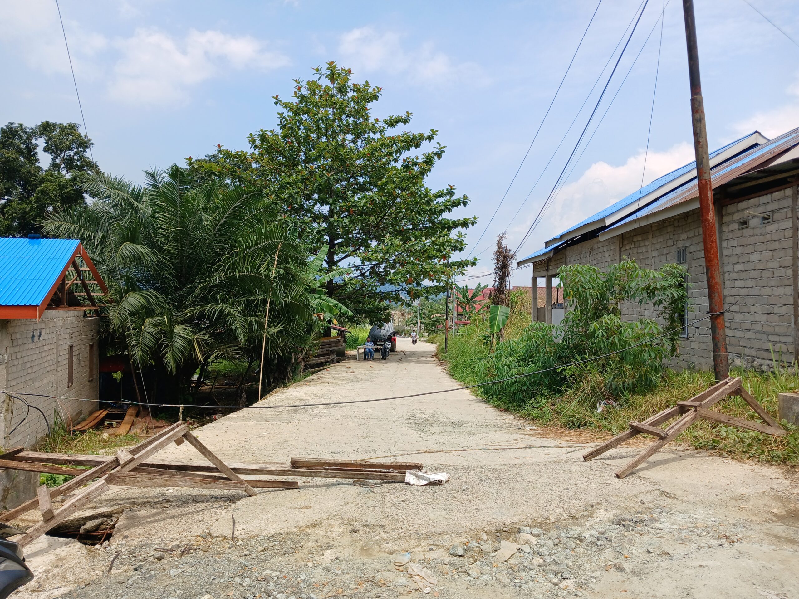 Warga tersebut melakukan Pemalangan jalan dengan alasan lahannya belum diganti rugi.