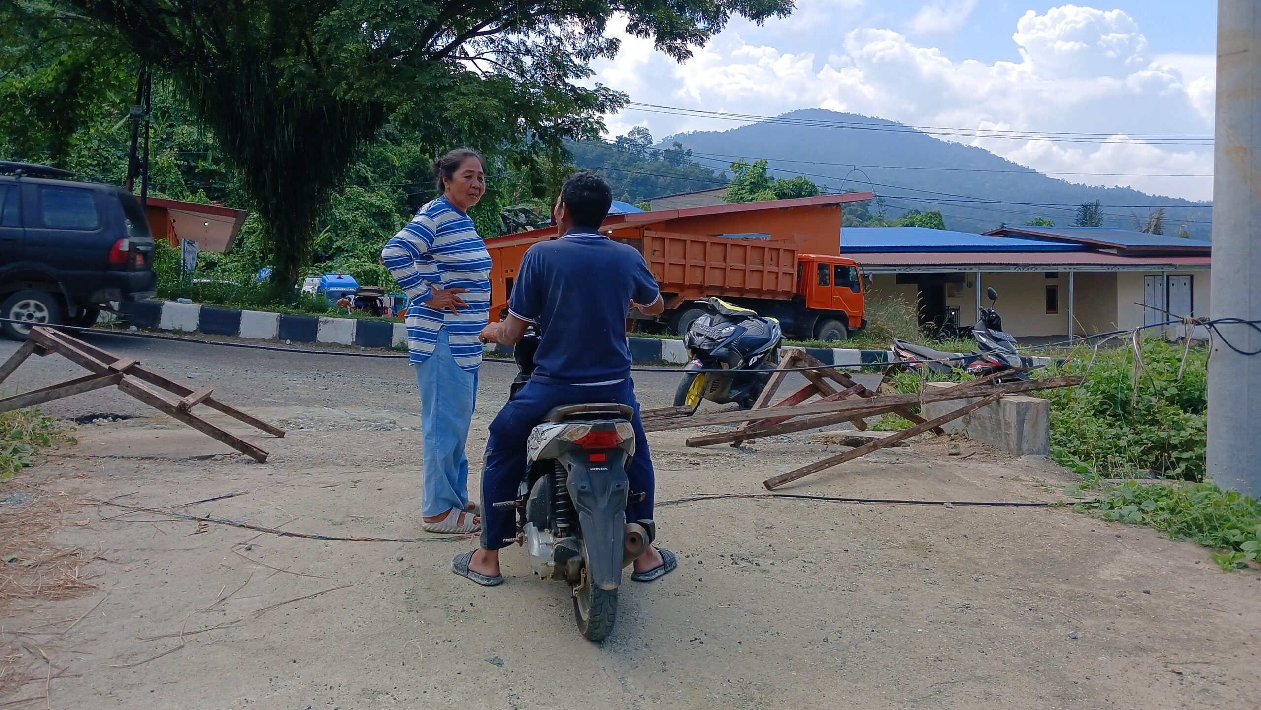 “Saya palang jalan ini, tanah ini belum dibayar sama Bupati, harus bayar sama saya, tidak boleh lewat kalau tidak bayar,”ungkap warga bernama Tante Martha kepada media (14/4)